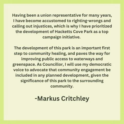 Although this park is currently undeveloped, densely treed, and inaccessible , we hope to change that through a community-driven push for an HRM-led community consultation to capture our community’s vision for a future accessible park we can all enjoy on this beautiful parcel of public parkland.
